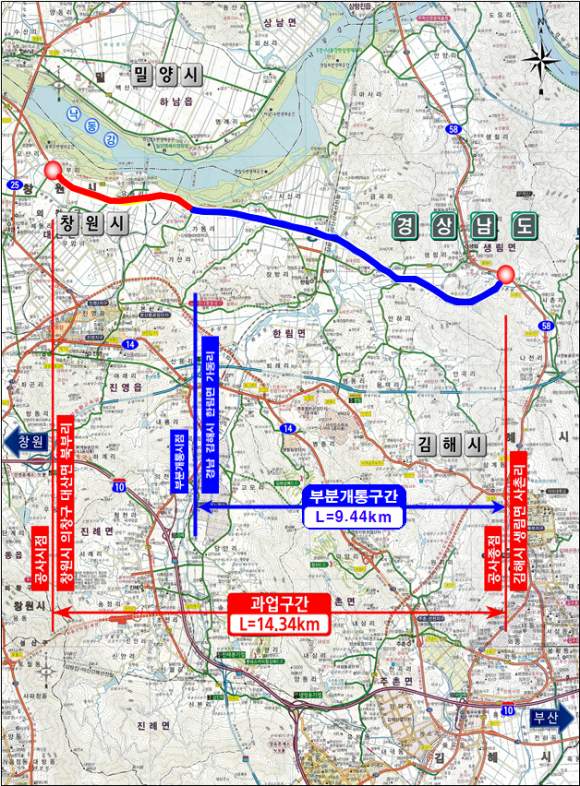 - 기존 개통 구간: 생림면 나전교차로 ↔ 상동면 상동교차로 (6.16㎞, 2023년 11월 개통)