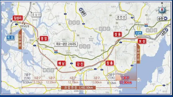 - 제3공구(화순 이양면~장흥 장평면): 기존 경전선 개량 및 노반 신설 중