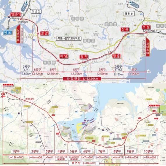 - 제4공구(장흥 장평면~보성 득량면): 직선화·전철화 공사 중