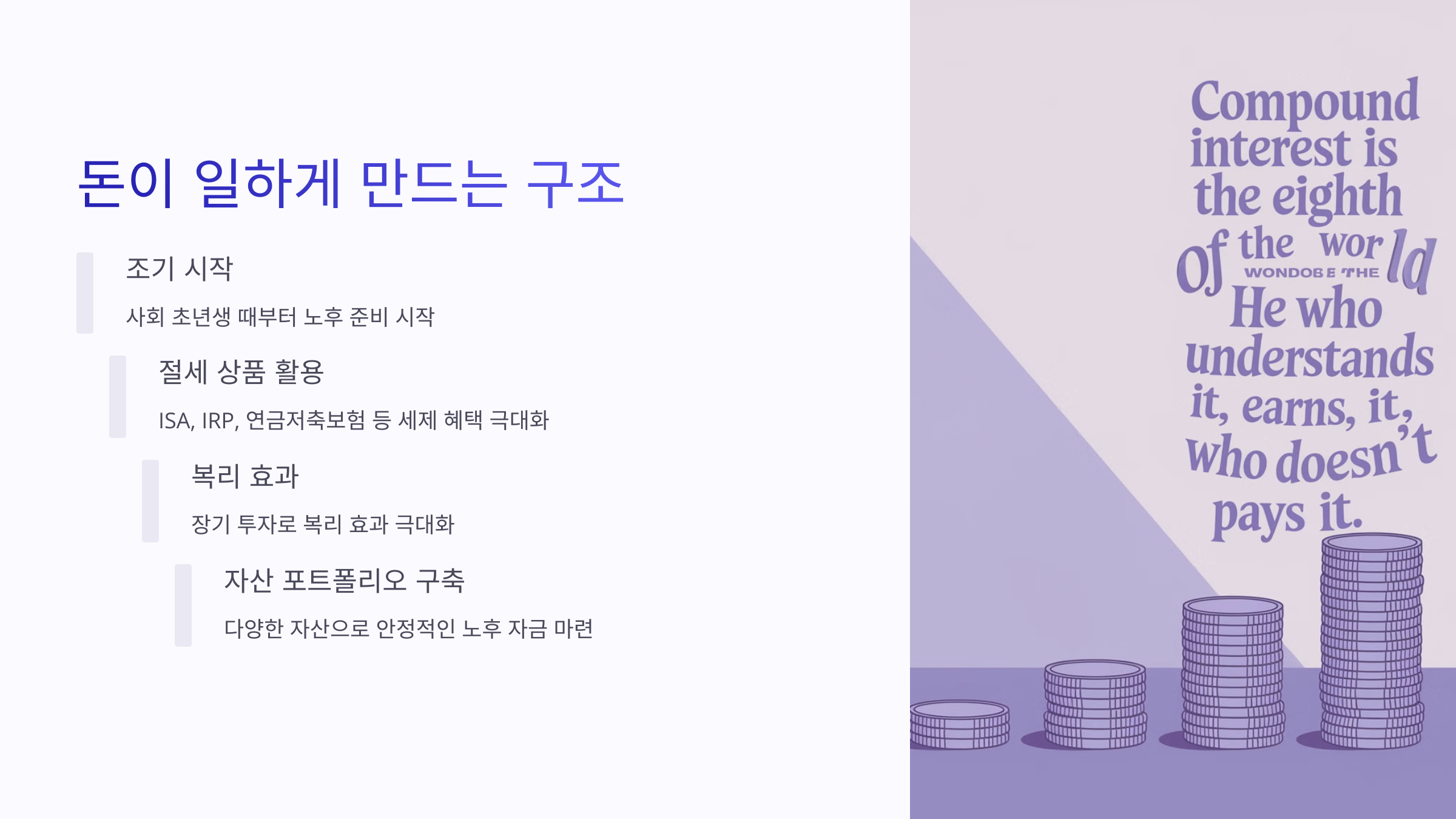 - 절세 상품을 조기 활용하고 복리로 자산을 불리는 장기 전략이 핵심입니다.