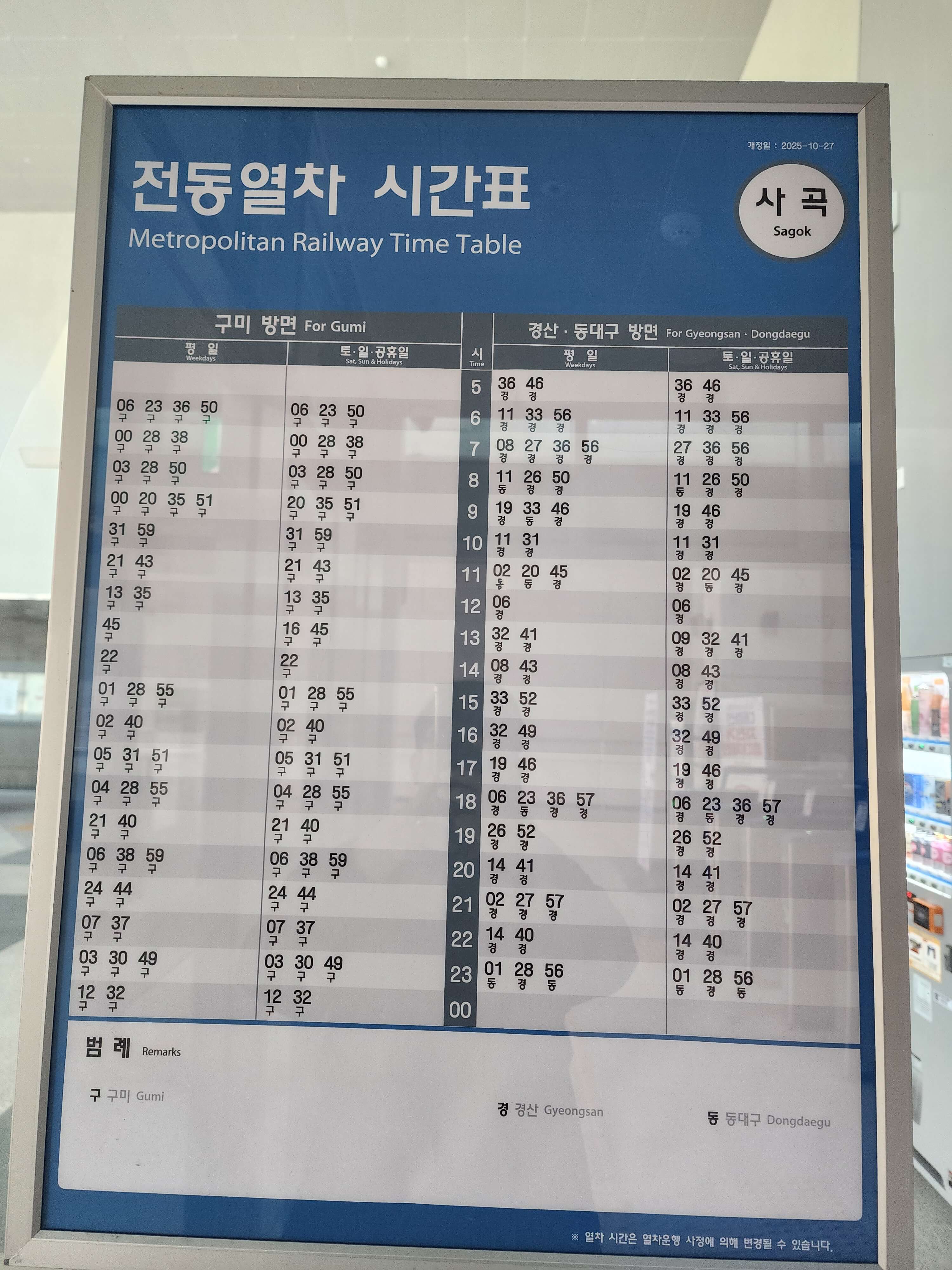 2025년 10월27일 부터 총4회 운행 일부 조정이 있습니다.