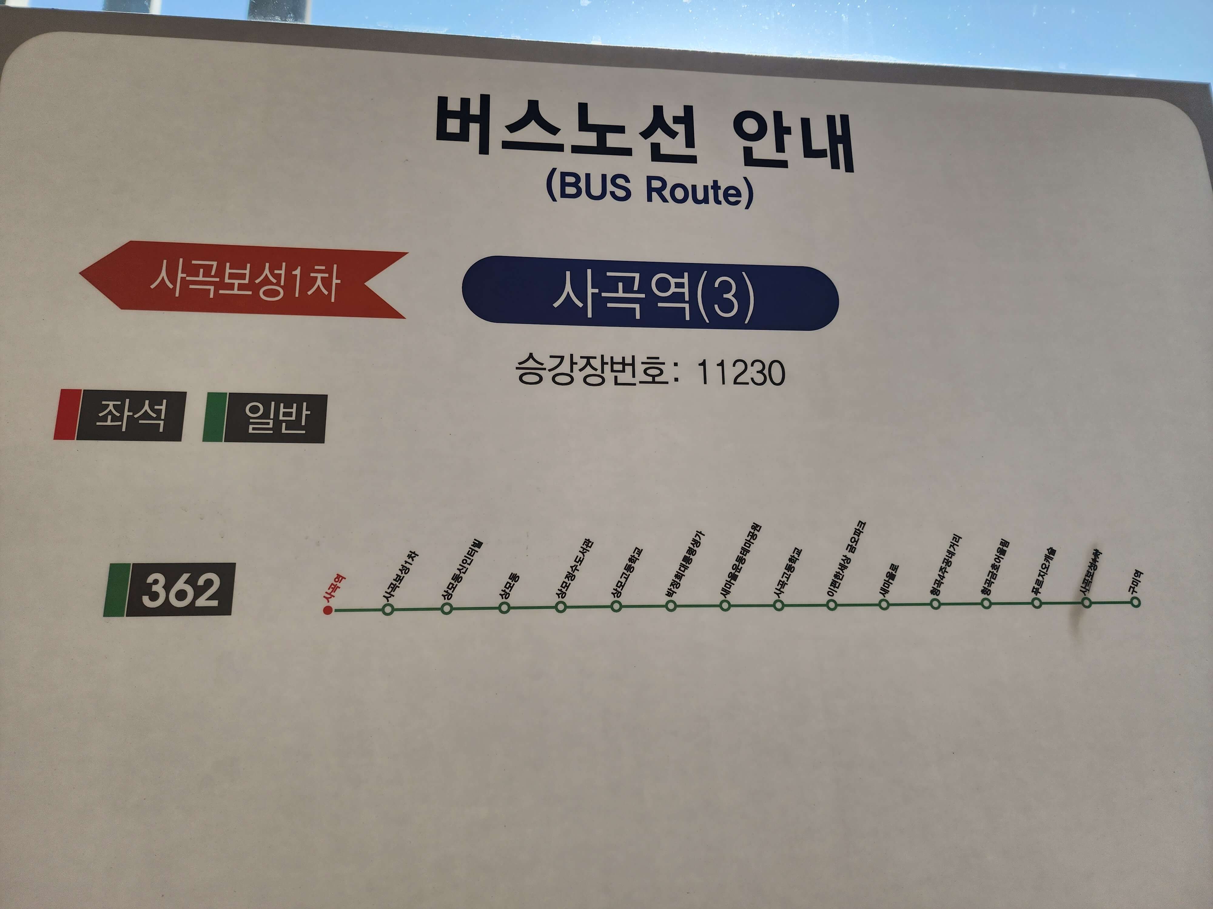 사곡역 앞에 버스 승강장이 있습니다. 362번 버스가 섭니다.