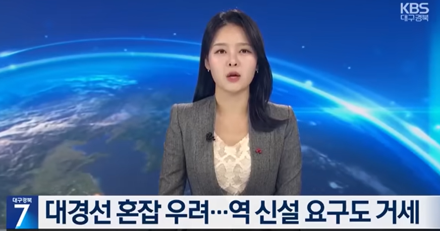 🚂대구권 광역철도(대경선) 개통 후 2칸짜리 열차로 인한 혼잡과 긴 배차 간격(최대 1시간)으로 인한 승객 불편이 심각합니다.