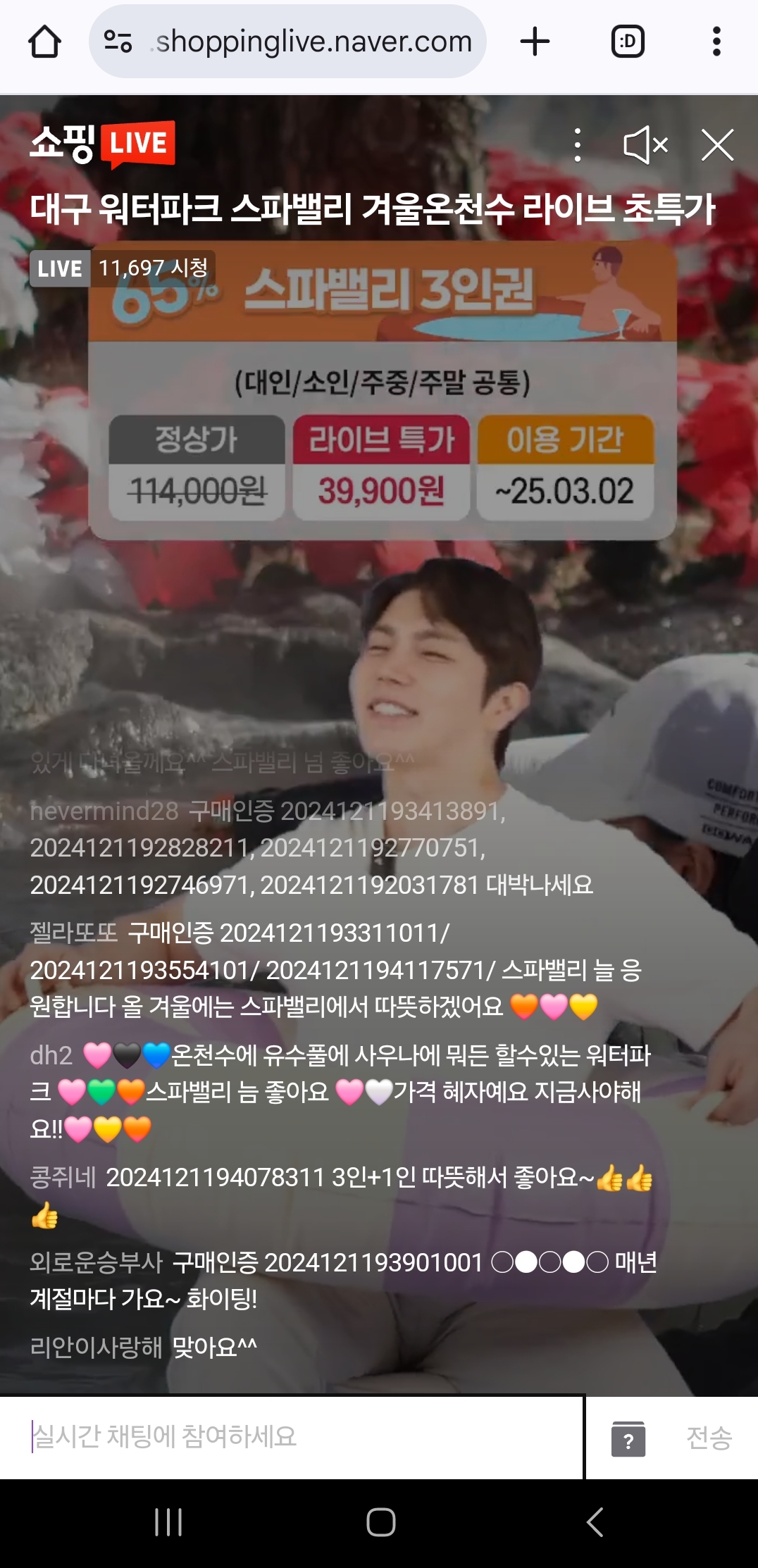 대구 스파밸리 워터파크 겨울 온천수 특가 방금 라이브 진행을 했다