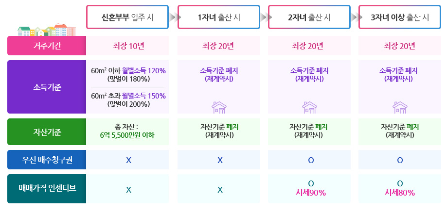 - 입주자모집공고일 현재 신혼부부(혼인기간 7년 이내) 또는 예비신혼부부(6개월 이내 혼인 예정)