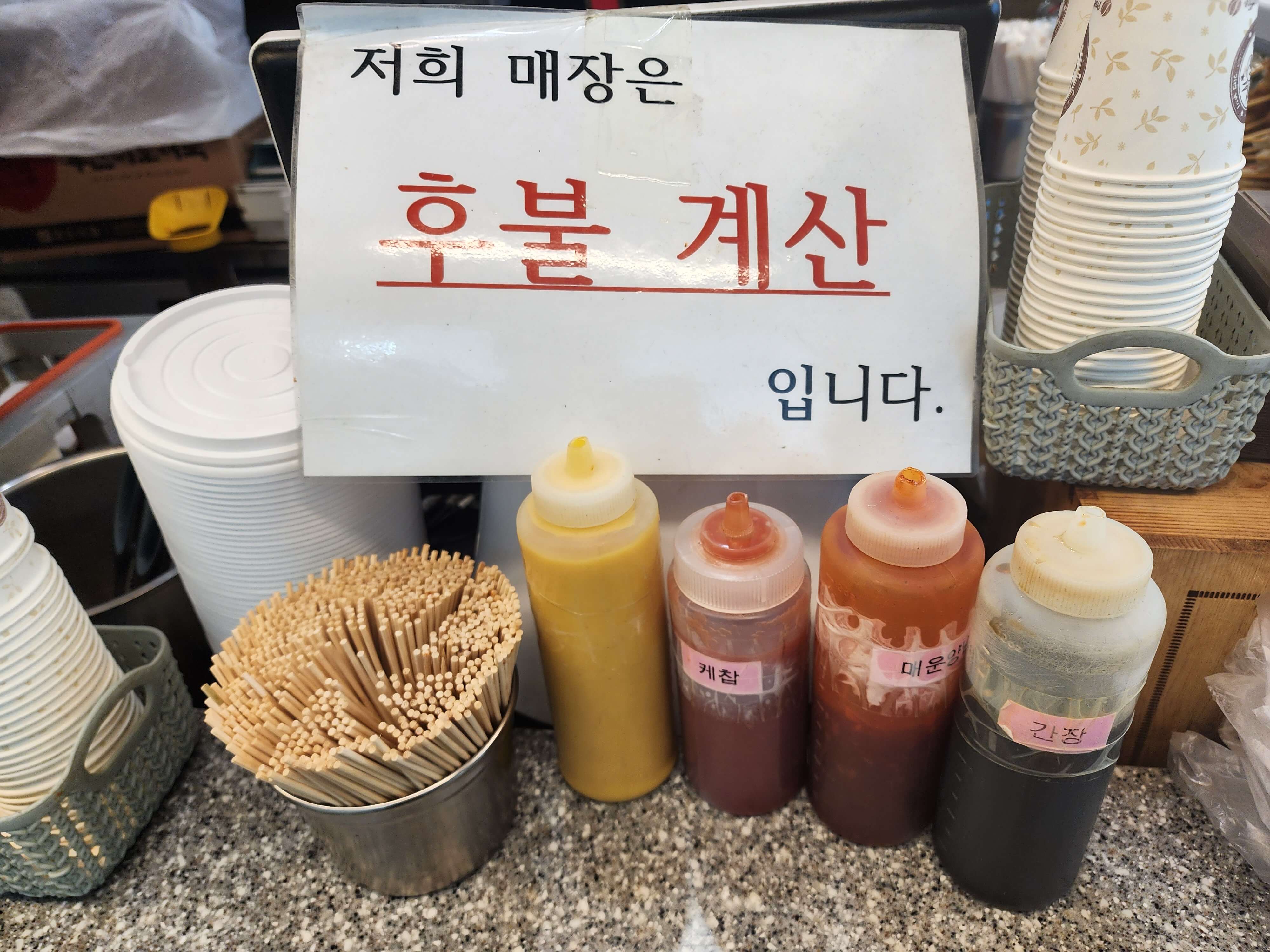 케찹, 간장 등 소스들이 있습니다.