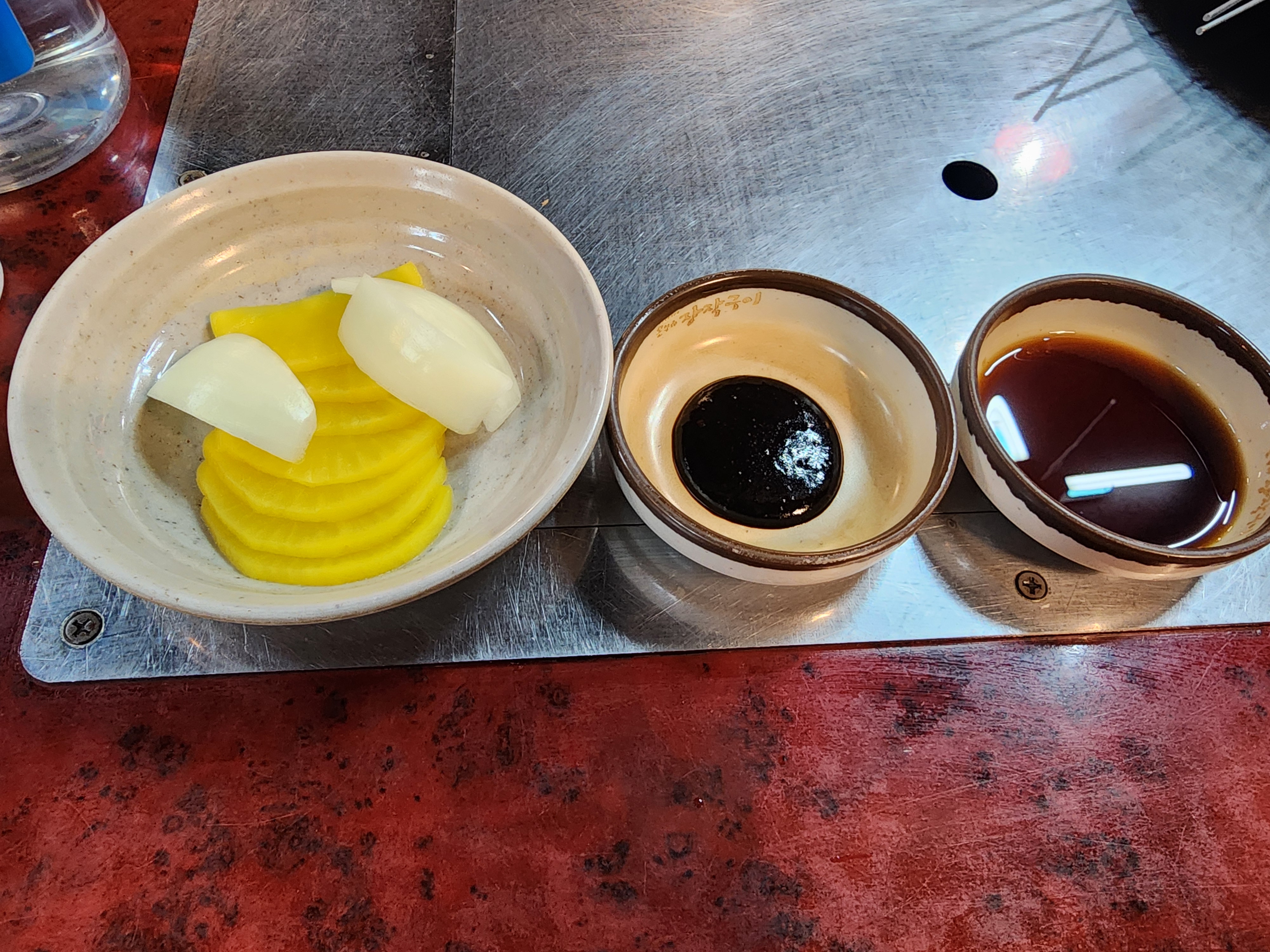 단무지와 양파, 춘장 그리고 간장을 가져다주네요~