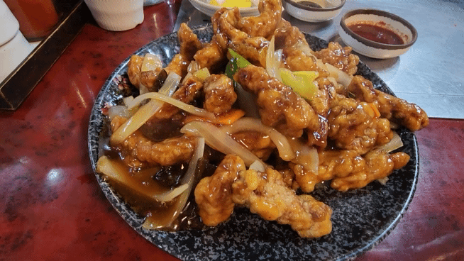 중국집 태향 간판요리 탕수육이 나왔습니다.