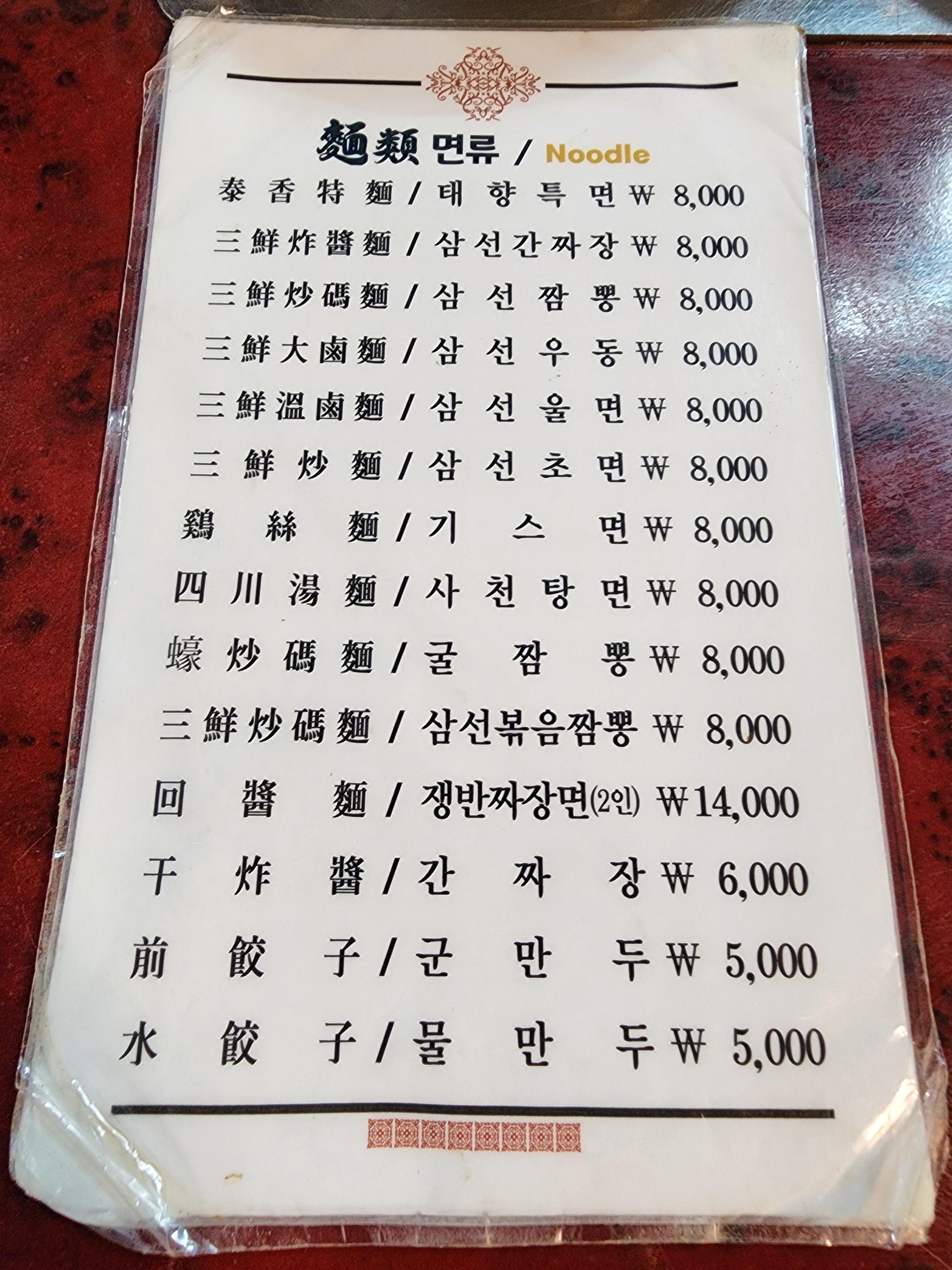 중국집 태향 1층에 자리가 있어서 앉았습니다.