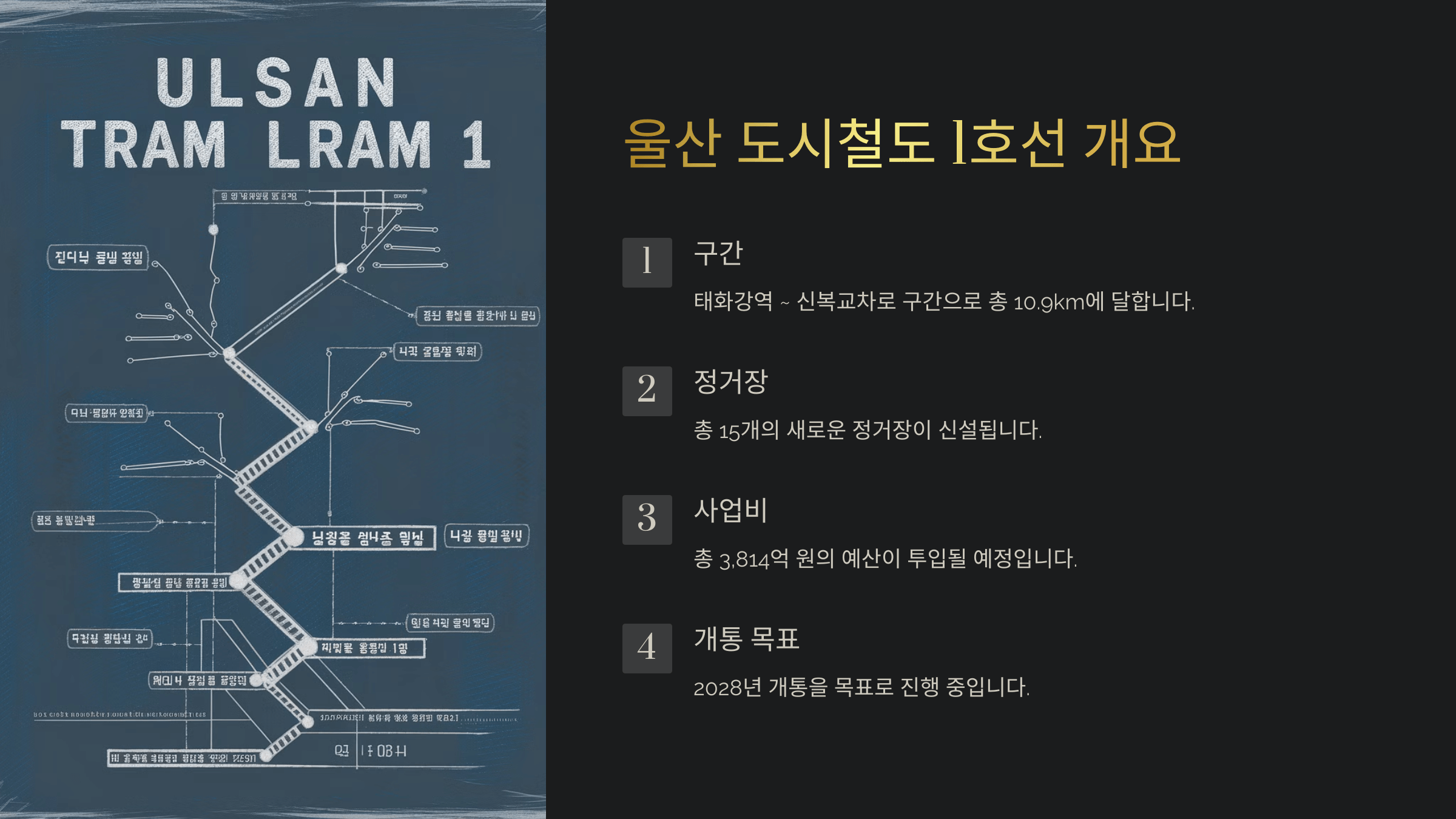 울산 도시철도 1호선 트램 노선도와 개통 목표 2028년