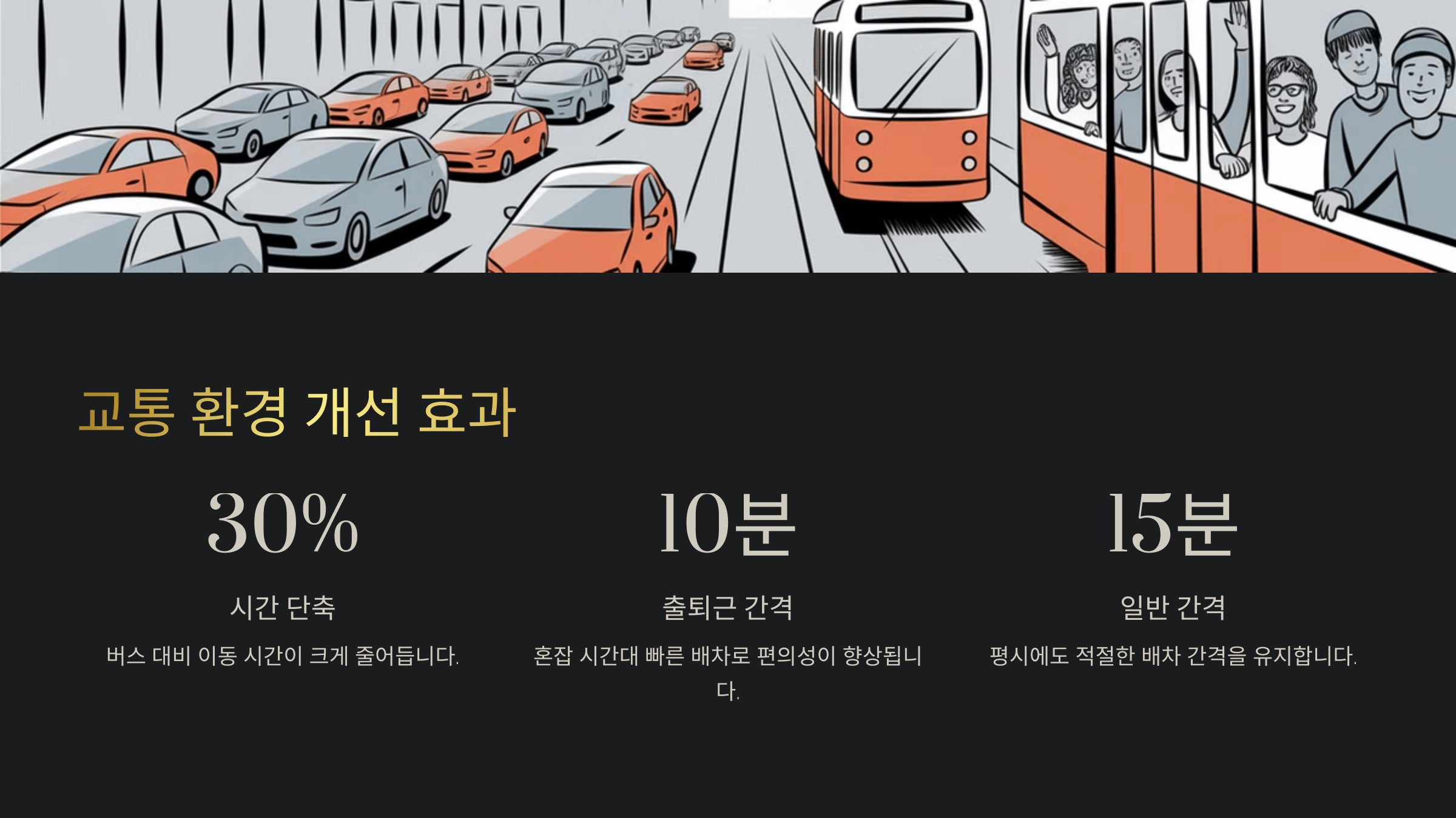 - 이동시간 단축: 평균 버스 소요시간(40분) 대비 30%(12분) 단축