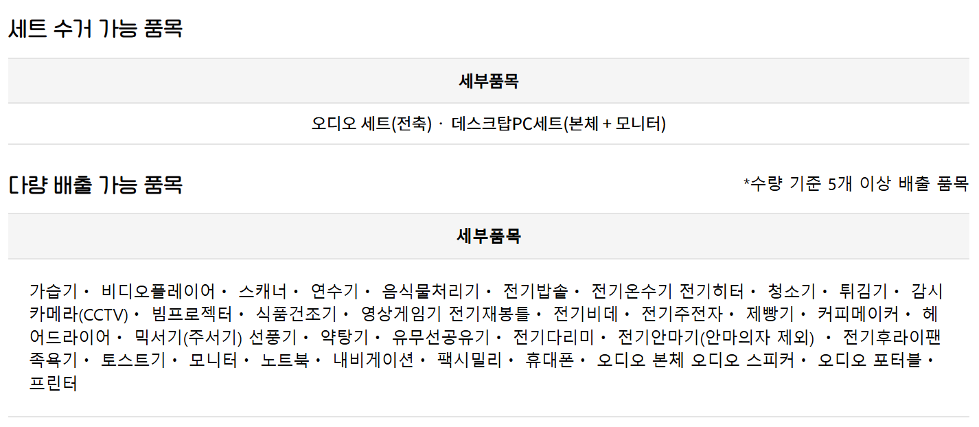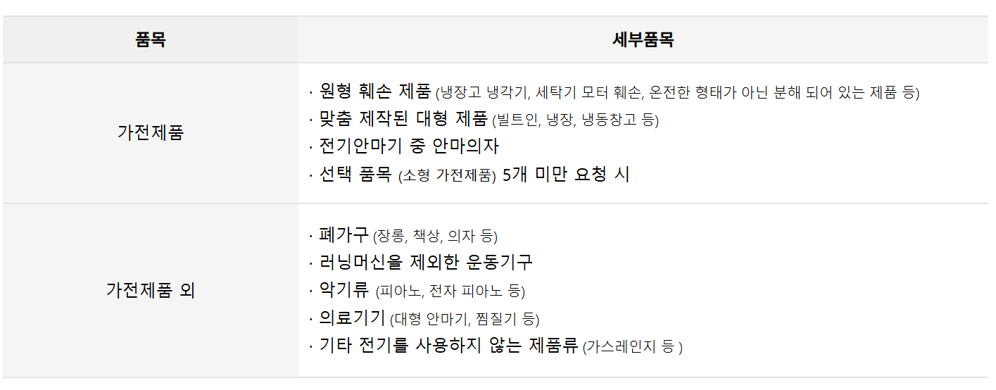 - 방문수거 대상품목 수거 시, 기타 비대상 소형가전제품 추가 수거 가능합니다.