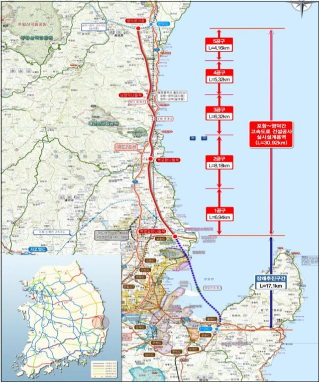포항 흥해읍에서 영덕 강구면을 연결하는 30.9km 구간의 포항-영덕 고속도로는 올해 연말 개통 예정이다. 특히 청하터널에는 GPS 기반 자율주행 서비스가 도입되어 터널 내에서도 안정적인 내비게이션 사용이 가능하다. 포항과 영덕 지역은 교통 환경 개선에 따른 부동산 시장 가치 상승이 기대된다.