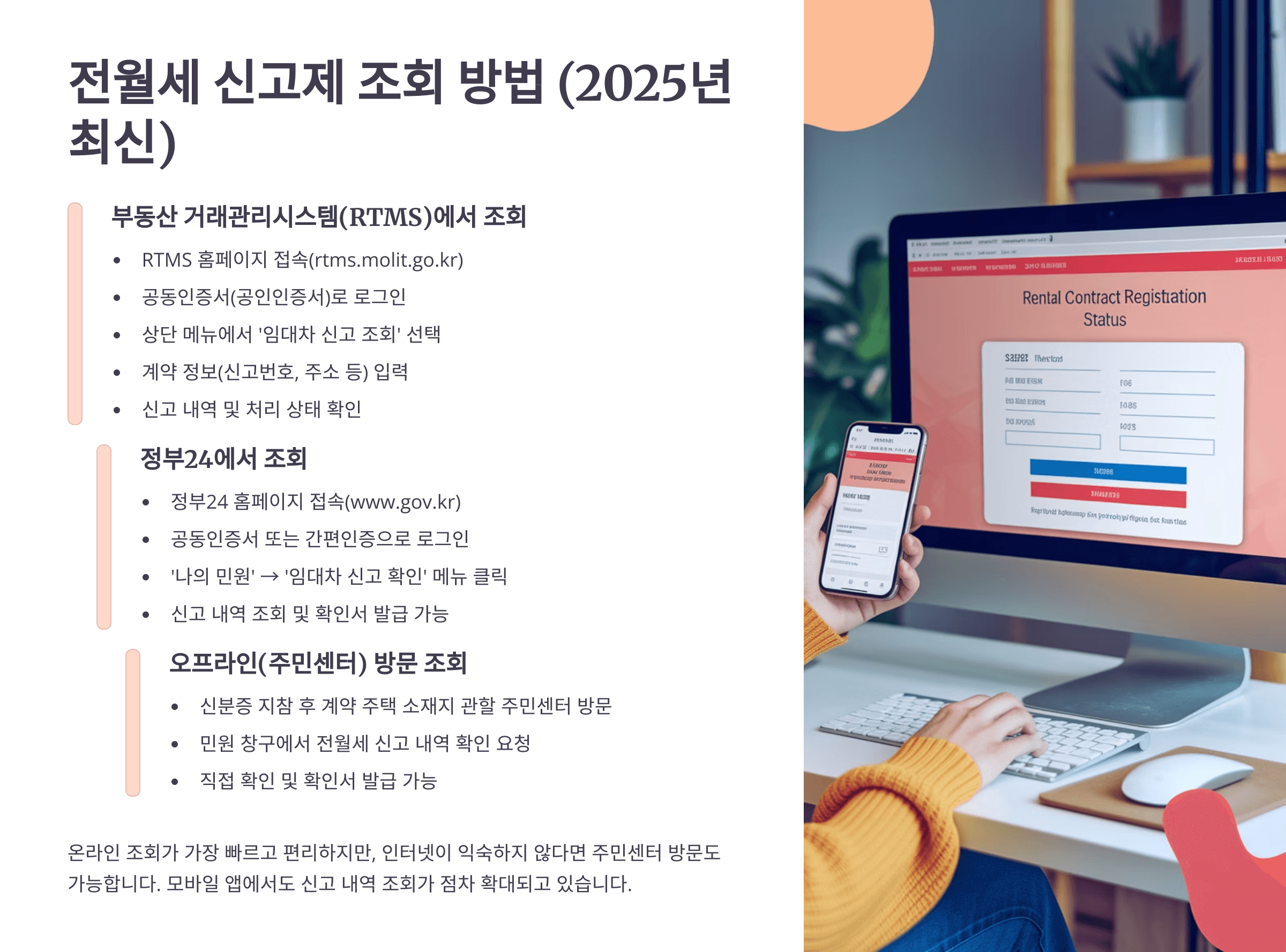 2025년부터 전월세 신고제가 한층 강화되고, 조회 및 신고 방법도 대폭 개선됩니다. 임대인과 임차인 모두가 반드시 알아야 할 전월세 신고제의 최신 기준, 조회 방법, 모바일 간편신고, 과태료 등 모든 정보를 최적화된 형식으로 상세히 안내합니다.