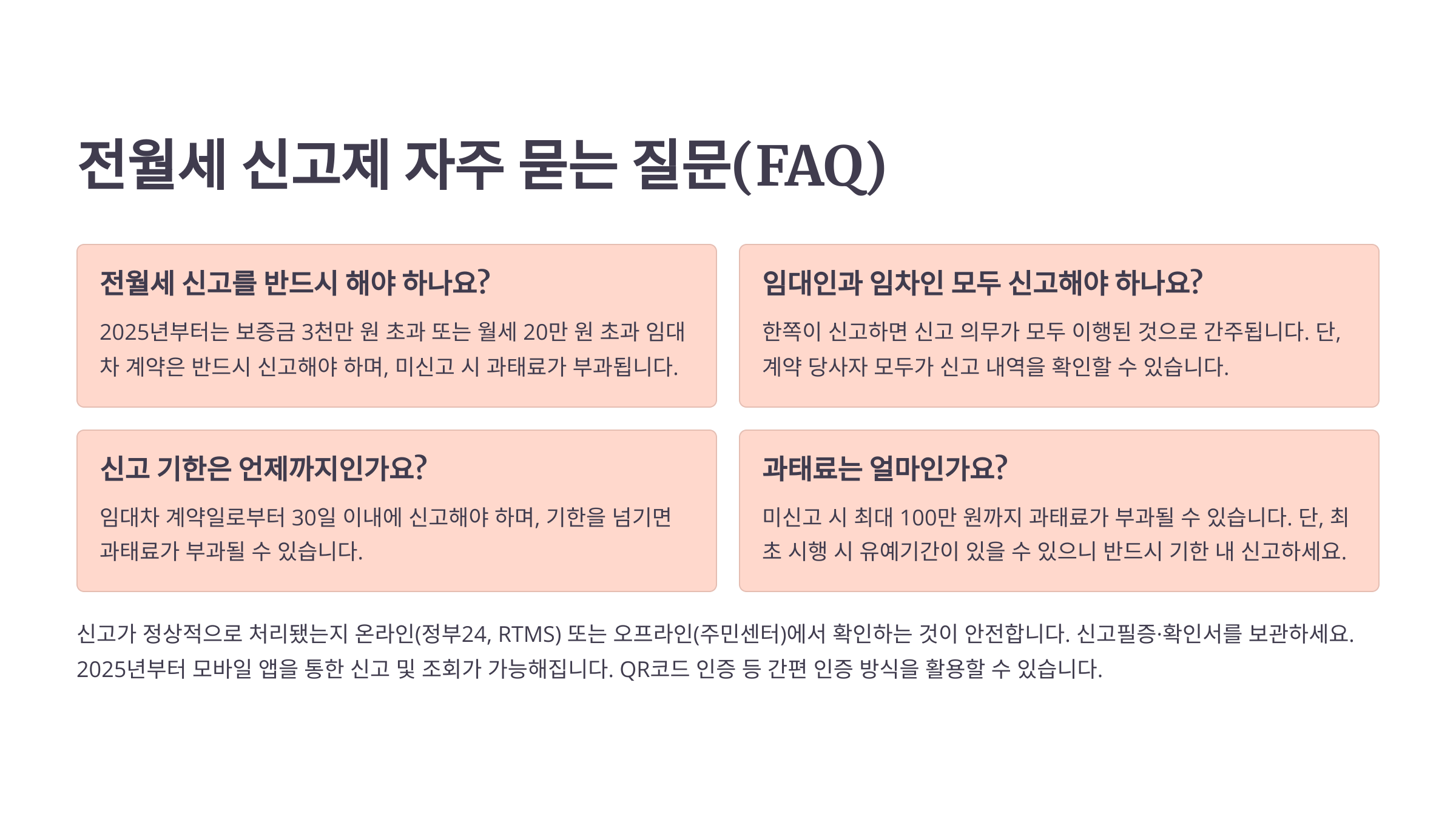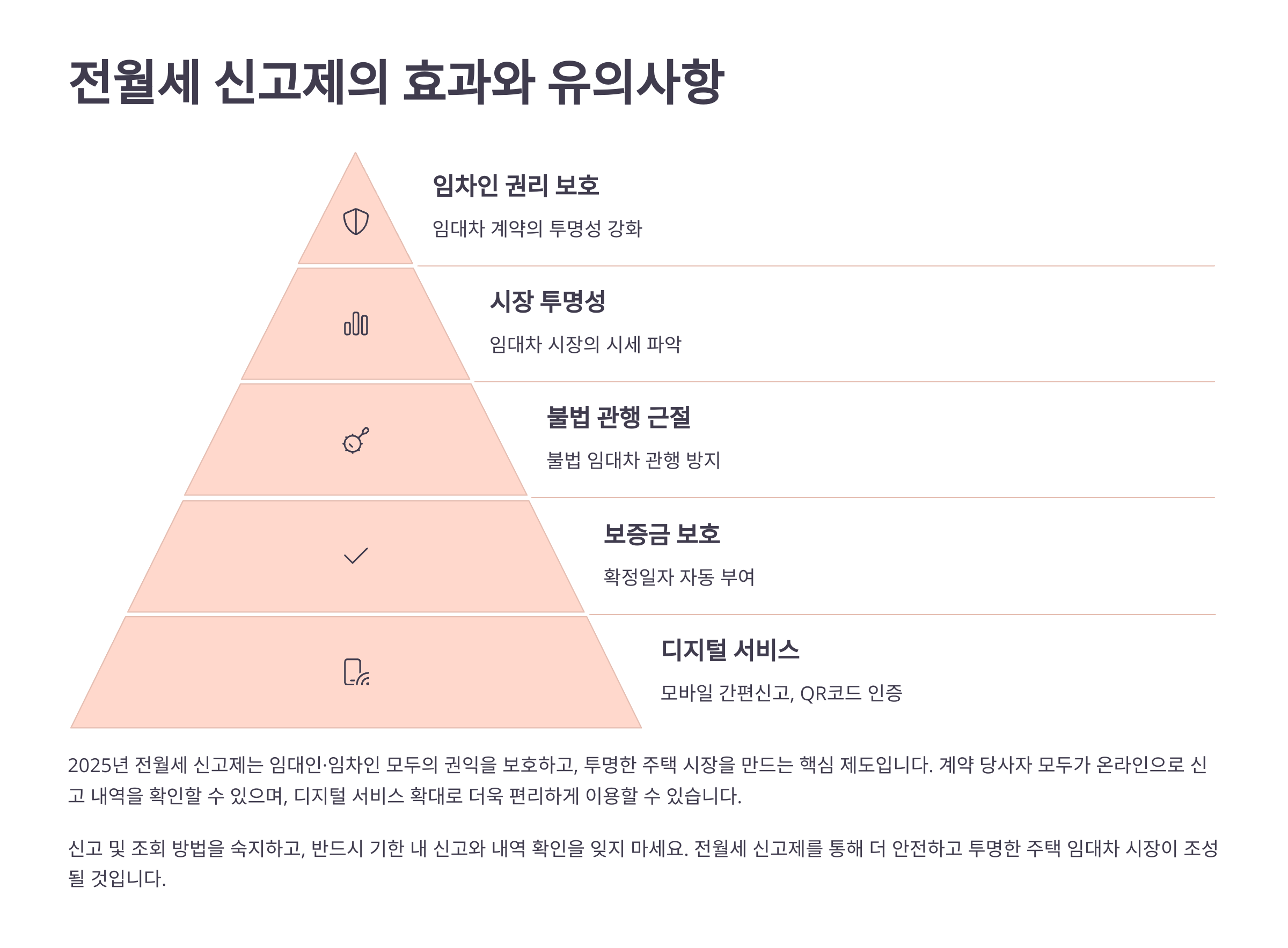 2025년 전월세 신고제는 임대인·임차인 모두의 권익을 보호하고, 투명한 주택 시장을 만드는 핵심 제도입니다.